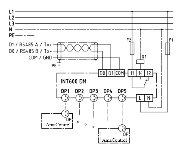 Wie sieht das Anschluss-Schaltbild von AmaControl Gateway INT600 DM aus? Ricardo Ayala 4. November 2025 14:15 GEFAHR: Niemals die Anschlussklemmen und Steckverbindungen öffnen oder berühren, solange sich die Maschinen nicht im spannungslosen Zustand befinden! Arbeiten an elektrischen Einrichtungen dürfen nur von Elektrofachkräften durchgeführt werden. Abbildung: Anschluss-Schaltbild INT 600 DM-Gateway Weiterführende Informationen, Links, etc.Link zur Seite mit der Betriebsanleitung von AmaControl im Produktkatalog auf ksb.com (unter "Dokumente" am Ende der Seite) Link zur Seite mit der Zusatzbetriebsanleitung "Modbus-Protokoll AmaControl" im Produktkatalog auf ksb.com (unter "Dokumente" am Ende der Seite) Kommentare 0 Kommentare Bitte melden Sie sich an, um einen Kommentar zu hinterlassen.