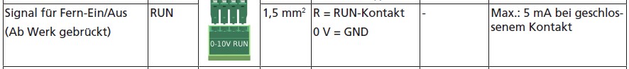 "OFF" im Display wird angezeigt wenn die Pumpe über den externen digitalen RUN Kontakt ausgeschaltet oder einfach nur die werksseitige Brücke entfernt wird.