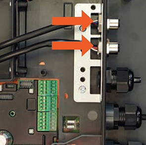Schritt 4: Anschlussstecker der beiden M12-Kabel in die dafür vorgesehenen Steckplätze einstecken. |