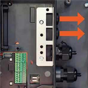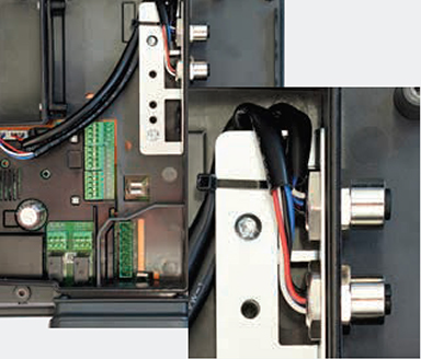 Schritt 5: Die M12-Kabel ordentlich im Gehäuse verlegen und unter das Anschlussblech fädeln. |