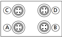 Hinweis: Für den Busabschluss werden Abschlusswiderstände 4) benötigt, die auf den jeweils freien M12 Anschluss (C bzw. D) des Zubehörsatzes M12-Kit aufgesteckt werden.
