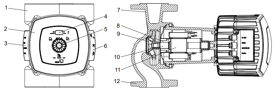 Die Pumpe ist mit einem radialen Strömungseintritt (Saugstutzen) und in einer Linie gegenüberliegenden, radialen Strömungsaustritt (Druckstutzen) ausgeführt. Das Laufrad ist mit der Motorwelle fest verbunden. Es erfolgt keine mechanische Abdichtung, da die komplett von der Statorwicklung isolierte rotierende Einheit vom Fördermedium geschmiert und gekühlt wird. Das Schmiersystem mit hochwertigen Kohlelagern gewährleistet zusammen mit dem präzise gewuchteten Rotor hohe Laufruhe und lange Standzeiten. Die integrierte stufenlose Differenzdruckregelung und die Betriebssoftware ermöglichen der Pumpe sich optimal an veränderliche Betriebsbedingungen anzupassen und die Betriebskosten zu minimieren. Die effiziente Hydraulik in Verbindung mit dem hocheffizienten Elektromotor trägt dazu bei, den aufgenommenen Strom so effizient wie möglich in hydraulische Energie umzusetzen.