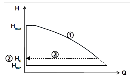Die Konstantdruckregelung hält die eingestellte Förderhöhe ② aufrecht, unabhängig