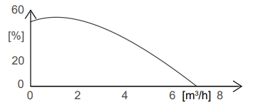 Die Anlagenkennlinie (2) ist physikalisch immer eine Parabel, die durch den Nullpunkt (5) führt. Bei der Wahl des Sollwerts darauf achten, dass der Schnittpunkt zwischen dem maximalen Betriebsbereich (1) und der Regelkurve (3)/(4) über oder auf der Anlagenkennlinie (2) liegt. Somit ist sichergestellt, dass keine Unterversorgung auftritt. Ist die Betriebsart Eco-Mode bei gleichem Sollwert gewählt, stellt die Eco-Mode-Regelkurve (4) statt einer Geraden eine Parabel dar. Der Schnittpunkt mit der Maximalkennline (6) ist identisch zu dem Schnittpunkt beim Proportionaldruck. Bei einem Förderstrom von 0 liegt die eingestellte Förderhöhe um 50 % niedriger als bei Wahl der Betriebsart Proportionaldruck. Die Anlagenkennlinie (2) geht immer durch den Nullpunkt (5) und stellt wie die Eco-Mode-Regelkurve (4) eine Parabel dar. Dadurch wird sichergestellt, dass für den gesamten Betriebsbereich eine ausreichende Versorgung bei deutlich reduzierter Leistungsaufnahme vorliegt. Es wird empfohlen, den Eco-Mode dem Proportionaldruck vorzuziehen. Die Leistungsersparnis beträgt maximal 53 % und im Durchschnitt 36 %. Die Leistungsersparnis ist in der nachstehenden Abbildung dargestellt: