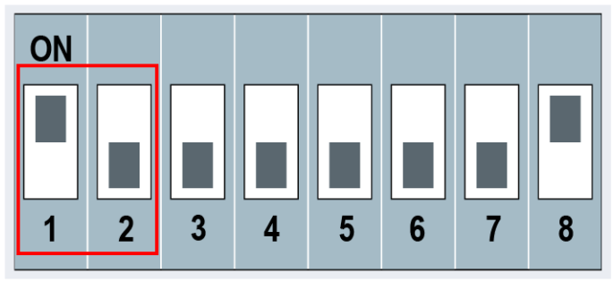 Die Einstellungen sind über DIP-Schalter 1 und 2 konfigurierbar.