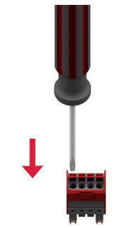 2. Federklemme mit dem Schraubendreher nach unten drücken, Kabel oder Sensoranschluss in das betreffende Loch einführen und Federklemme wieder lösen.
