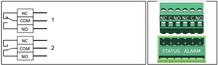 Die Information ist am Klemmenpaar Status mit den Klemmen NC / COM / NO auswertbar.