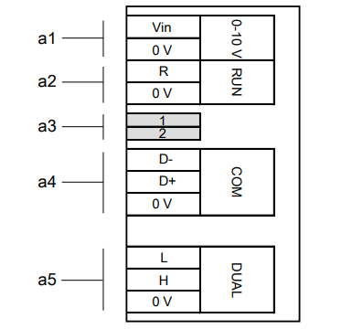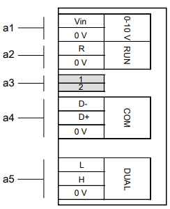 | Vin | 0-10 V (+) |